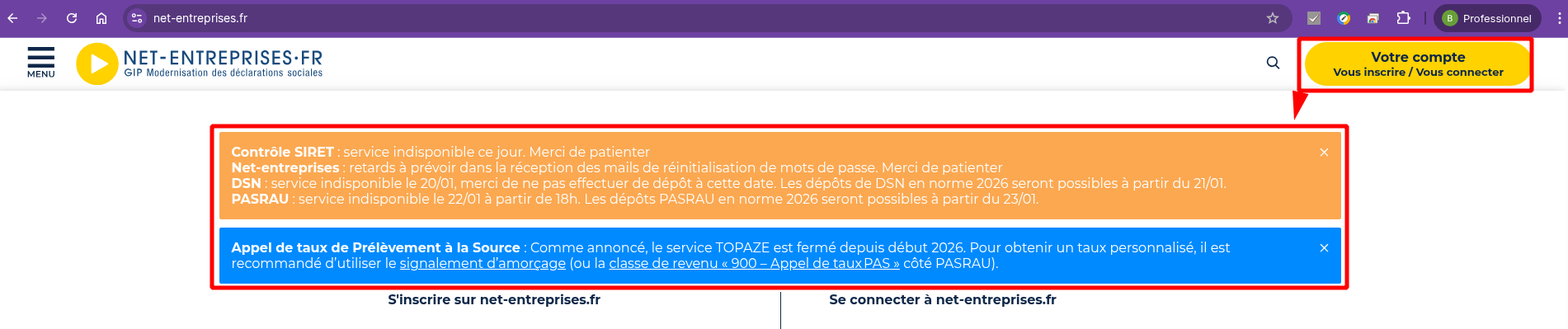 DSN : indisponible le 20 janvier. Les dépôts en norme 2026 seront ouverts à compter du 21 janvier.