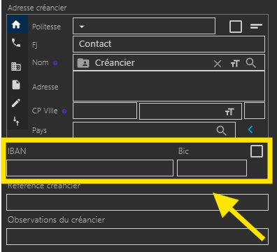 Les RIB sont saisis exclusivement au niveau des contacts.