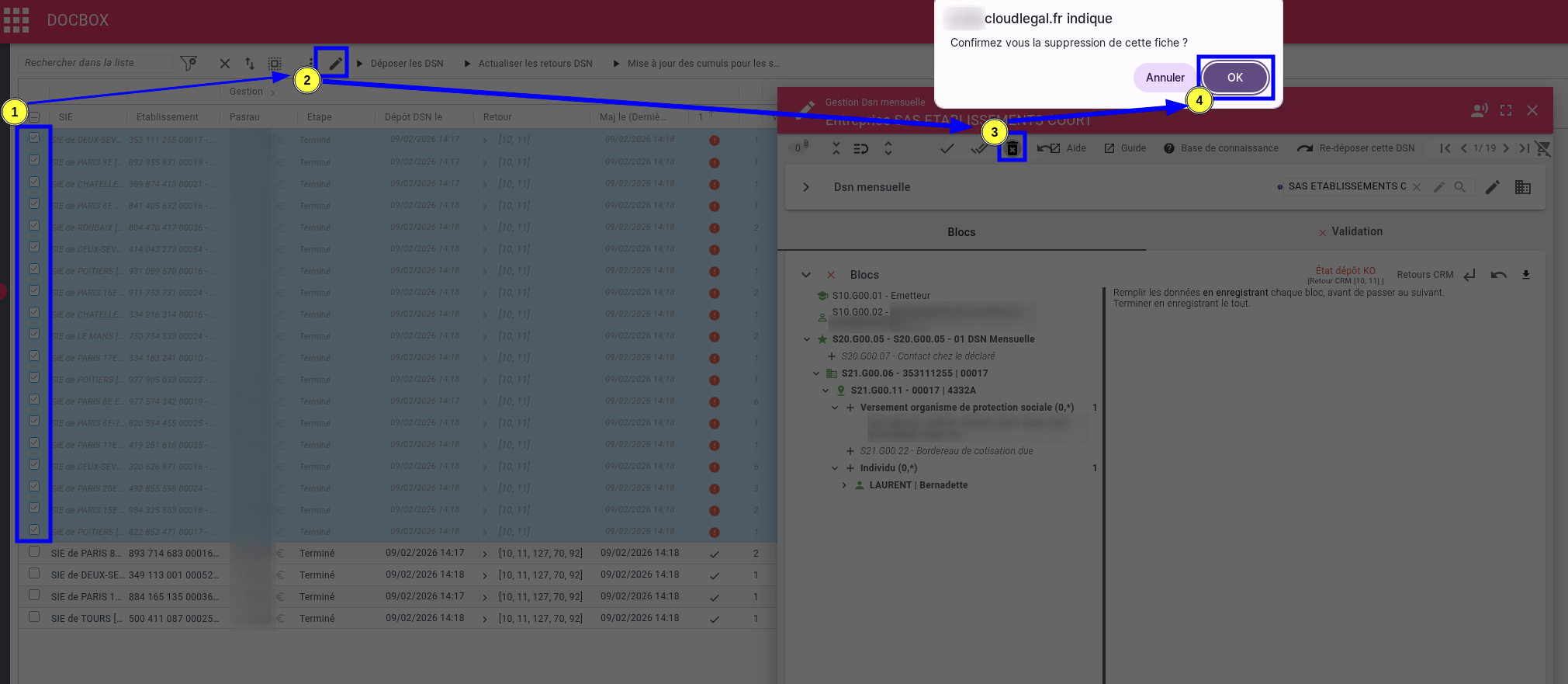 Répétez jusqu’à ce que toutes les DSN en erreur soient supprimées.